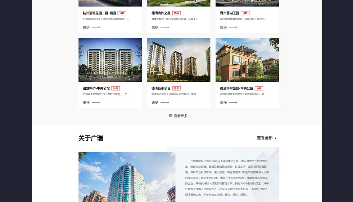 廣瑞集團股份有限公司(以下簡稱集團)是一家以房地產(chǎn)開發(fā)經(jīng)營為主,兼營商業(yè)經(jīng)營、路橋及基礎(chǔ)設(shè)施投資、礦業(yè)生產(chǎn)、旅游度假經(jīng)營管理、體育產(chǎn)業(yè)投資管理、建設(shè)監(jiān)理、物業(yè)管理及LED生產(chǎn)銷售等多元化綜合經(jīng)濟實體,始創(chuàng)于1986年,歷經(jīng)三十多年的發(fā)展,目前擁有20余家成員企業(yè),具備良好的人員素質(zhì)和管理水平,擁有500余名各類員工,其中各類專業(yè)技術(shù)人員就逾百人,在全國多地設(shè)有分支機構(gòu)。 集團總部座落浙江省瑞安市,多年來曾在杭州、嘉興、紹興、湖州、上海、桂林、呼和浩特、昆明、遼寧阜新、貴州黔西南州、澳大利亞墨爾本等地設(shè)立分支機構(gòu),并在當(dāng)?shù)剡M行開發(fā)、經(jīng)營、生產(chǎn)、管理。