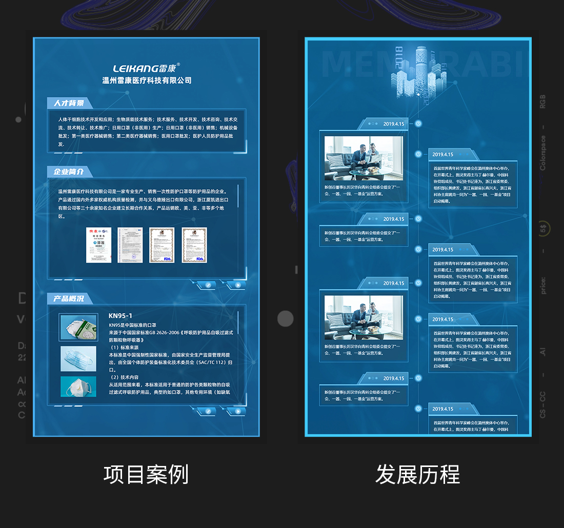 在總體設(shè)計(jì)樣式上,引入了大量富含科技感的線條、配色以及動(dòng)畫效果。充分考慮到展廳設(shè)備的人機(jī)工程交互的獨(dú)特性,針對(duì)每一臺(tái)設(shè)備和屏幕進(jìn)行定制化的設(shè)計(jì)與后期調(diào)試,使整體展館具有更好的視覺效果。