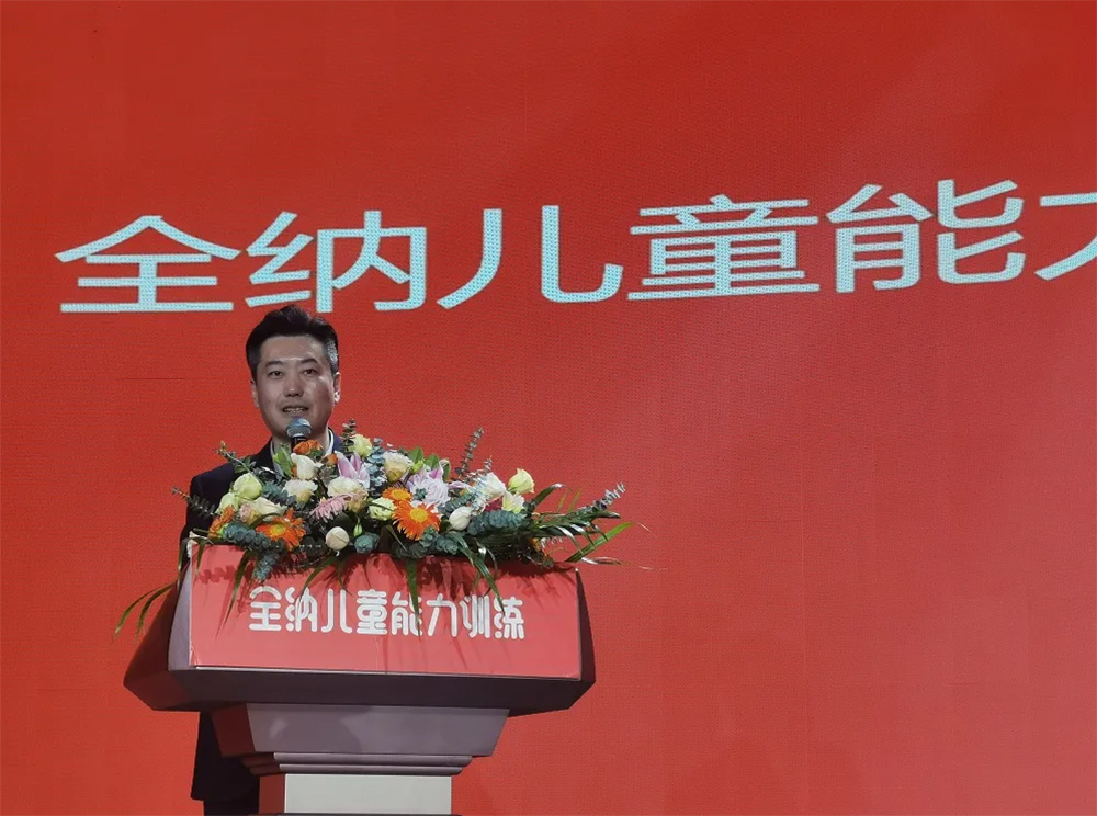 在發(fā)布會(huì)開(kāi)場(chǎng),全納總裁翁亦奇老師首先上臺(tái)致辭,對(duì)于本次品牌升級(jí)發(fā)布會(huì)做出了肯定,表明品牌的設(shè)計(jì)方式是在傳承全納理念和文化的基礎(chǔ)上,變得更加的時(shí)尚,更加有調(diào)性。同時(shí)將結(jié)合全納課程的特點(diǎn),做出適合全納的教學(xué)管理體系。闡述了在雙減政策下打造中國(guó)兒童能力訓(xùn)練與素質(zhì)教育大品牌的機(jī)遇和決心!