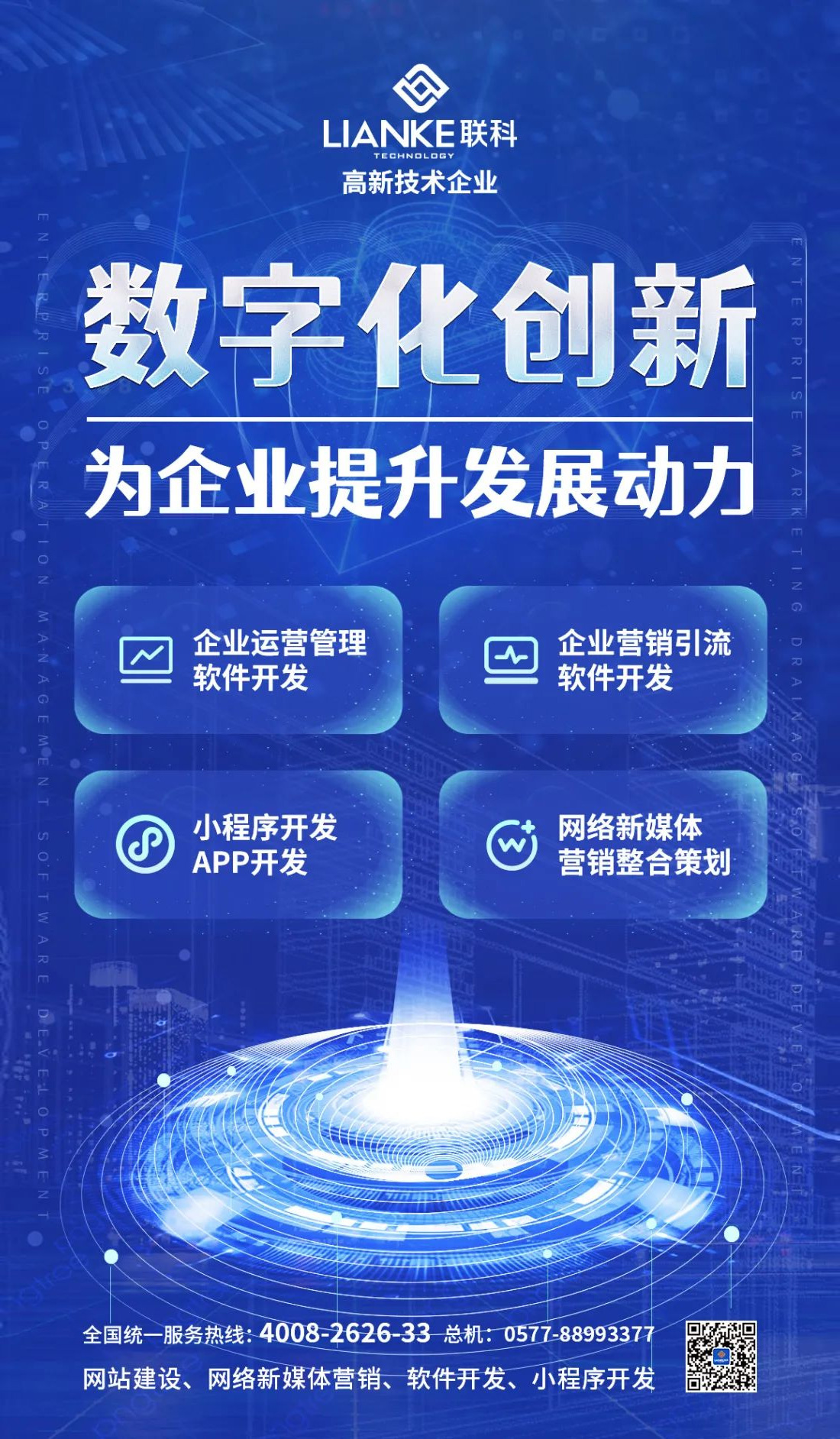 溫州市聯(lián)科科技有限公司成立于2002年,主要從事互聯(lián)網(wǎng)應(yīng)用軟件開(kāi)發(fā)和網(wǎng)絡(luò)營(yíng)銷(xiāo)策劃推廣,業(yè)務(wù)包括網(wǎng)站開(kāi)發(fā)、小程序開(kāi)發(fā)、APP開(kāi)發(fā)、新媒體(微信、抖音、百度)整合營(yíng)銷(xiāo)策劃、外貿(mào)推廣等。產(chǎn)品包括品牌定制型網(wǎng)站系統(tǒng)、四網(wǎng)合一自適應(yīng)網(wǎng)站系統(tǒng)、智立方全網(wǎng)營(yíng)銷(xiāo)系統(tǒng)、智慧醫(yī)院網(wǎng)站系統(tǒng)、學(xué)校網(wǎng)上辦事大廳系統(tǒng)、在線教育培訓(xùn)系統(tǒng)、迎客精靈小程序商城系統(tǒng)、智慧教培門(mén)店運(yùn)營(yíng)系統(tǒng)等。