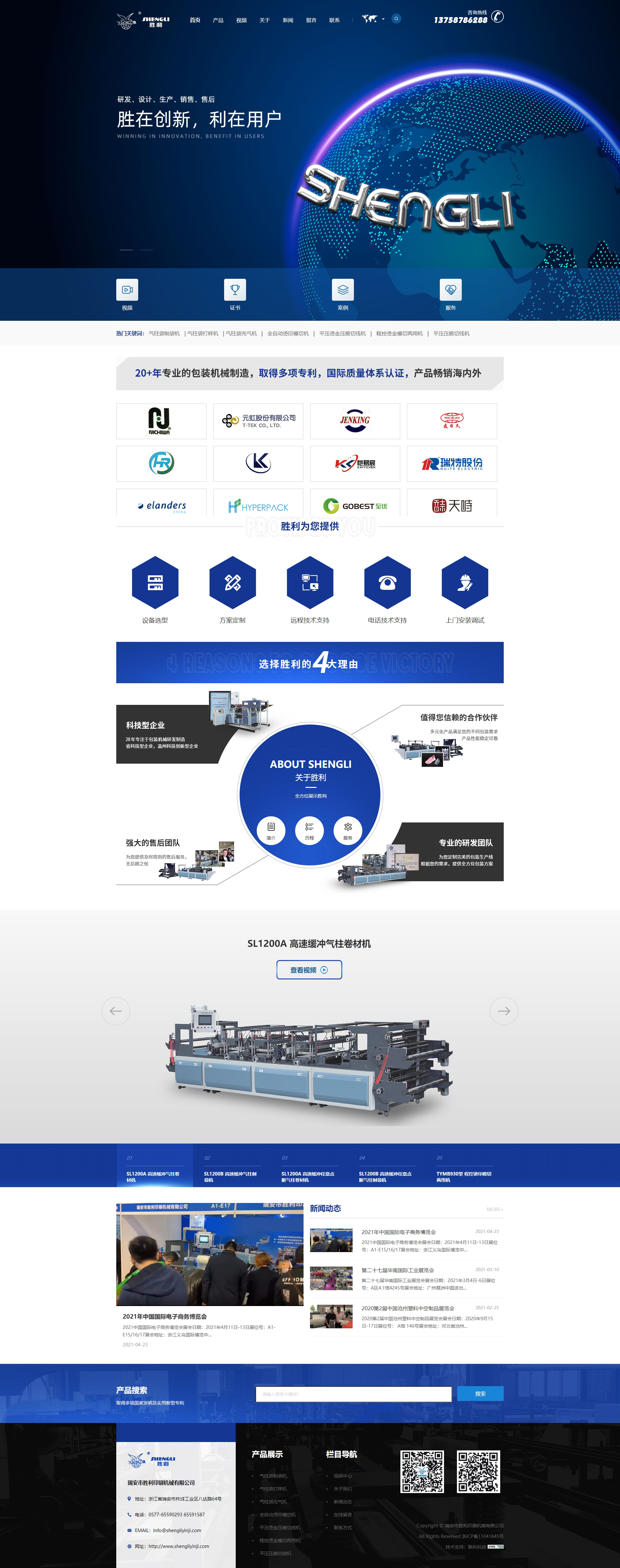 瑞安市勝利印刷機械有限公司,成立于1993年,是一家有著幾十年機械制造經(jīng)驗,集研發(fā)、設(shè)計、生產(chǎn)、銷售和售后服務(wù)為一體的科技綜合型企業(yè),在同行業(yè)中處于較好水平。公司技術(shù)力量雄厚、生產(chǎn)裝備精良、工藝技術(shù)先進、測試手段完備,專業(yè)生產(chǎn)高速緩沖氣柱卷材機、高速緩沖氣柱制袋機、高速緩沖任意點斷氣柱卷材機、高速緩沖任意點斷氣柱制袋機、高速無氣閥充氣鞋撐機、高速一出二緩沖氣柱任意點斷卷材機、高速氣柱氣枕葫蘆墊鞋撐一體機、冰袋機、袋中袋機、緩沖袋充氣機、緩沖袋打樣機、全自動燙印模切兩用機、程控燙印模切兩用機、燙