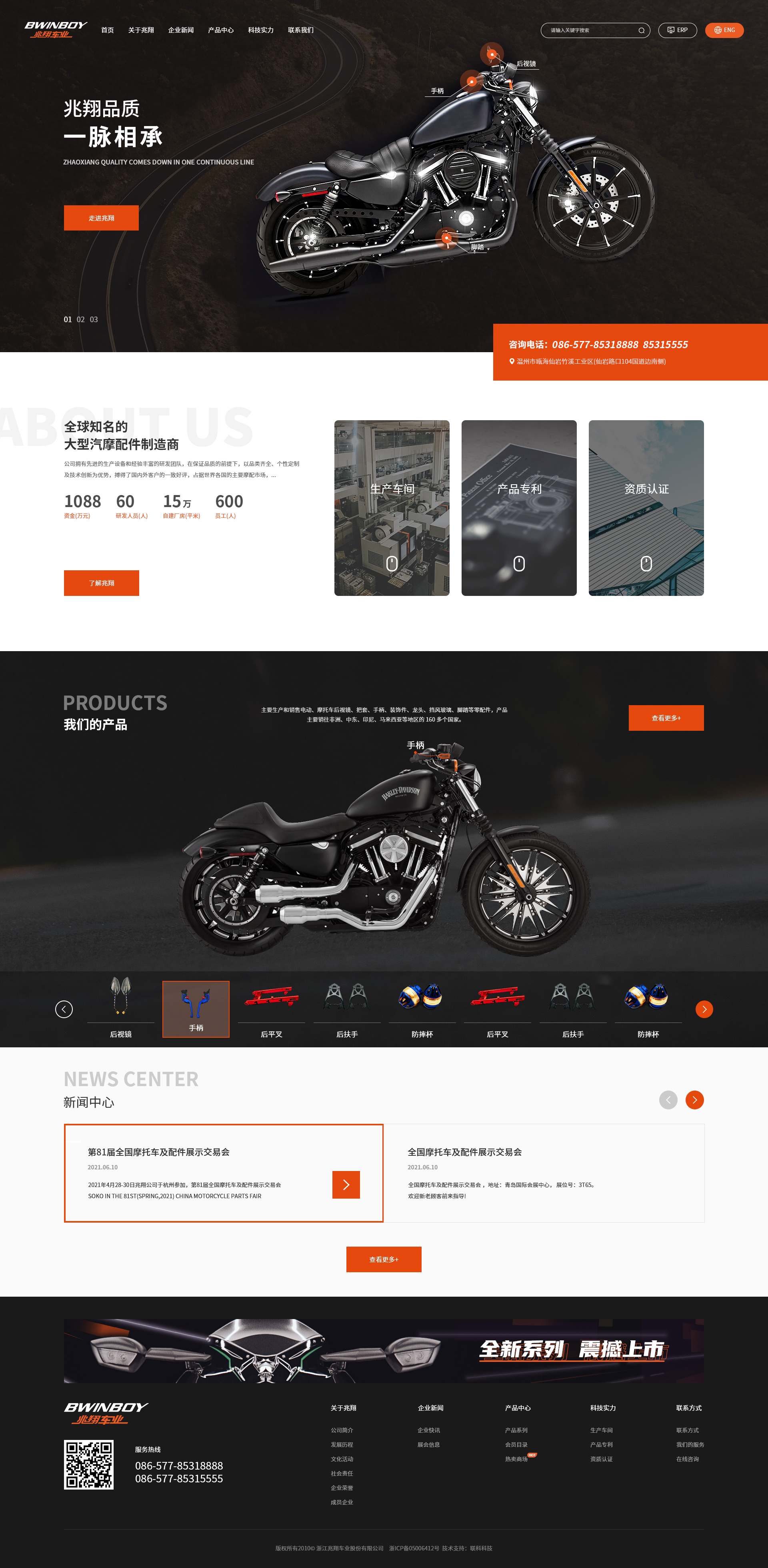 浙江兆翔車業(yè)股份有限公司是全球知名的大型汽摩配件制造商,主要生產(chǎn)和銷售電動(dòng)、摩托車后視鏡、把套、手柄、裝飾件、龍頭、擋風(fēng)玻璃、腳踏等零配件,產(chǎn)品主要銷往非洲、中東、印尼、馬來(lái)西亞等地區(qū)的160多個(gè)國(guó)家。公司成立于1993年,先后通過(guò)ISO9001、CQC、EMARK等質(zhì)量體系認(rèn)證。公司擁有先進(jìn)的生產(chǎn)設(shè)備和經(jīng)驗(yàn)豐富的研發(fā)團(tuán)隊(duì),在保證品質(zhì)的前提下,以品類齊全、個(gè)性定制及技術(shù)創(chuàng)新為優(yōu)勢(shì),搏得了國(guó)內(nèi)外客戶的一致好評(píng),占據(jù)世界各國(guó)的主要摩配市場(chǎng),成為目前全球最大的汽摩配供應(yīng)商。