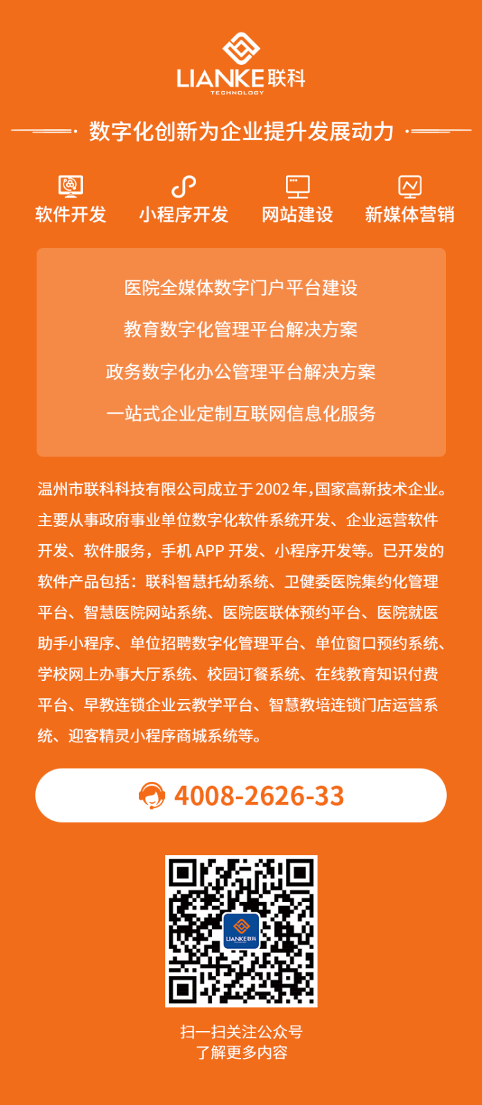 聯(lián)科科技24年專注于全媒體數(shù)字門戶系統(tǒng)、門戶網(wǎng)站內(nèi)容管理平臺(tái)、集約化醫(yī)院站群管理系統(tǒng)開發(fā)、
