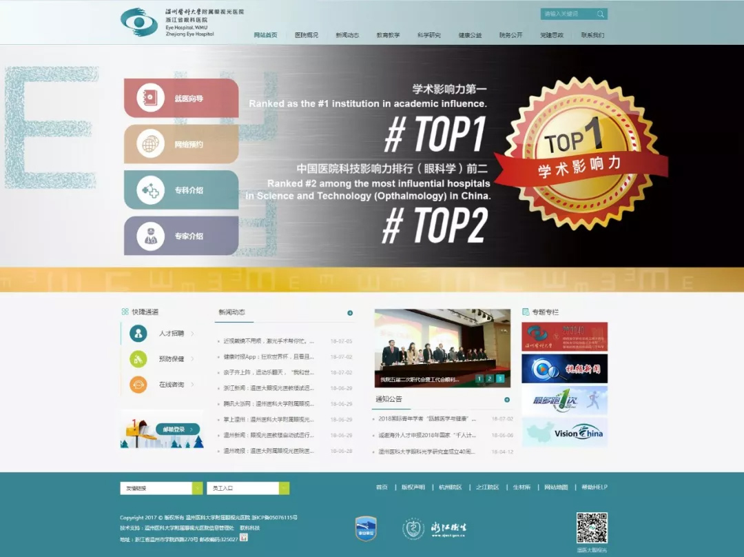 眼視光醫(yī)院站群包括:眼視光醫(yī)院對外官方網站和官方內網+40周年院慶網+英文國際站+國資處網站+護理部網站+眼視光公益醫(yī)療網站+招生辦網站+新聞網站+黨建思政網站+巾幗文明崗二級站群等。