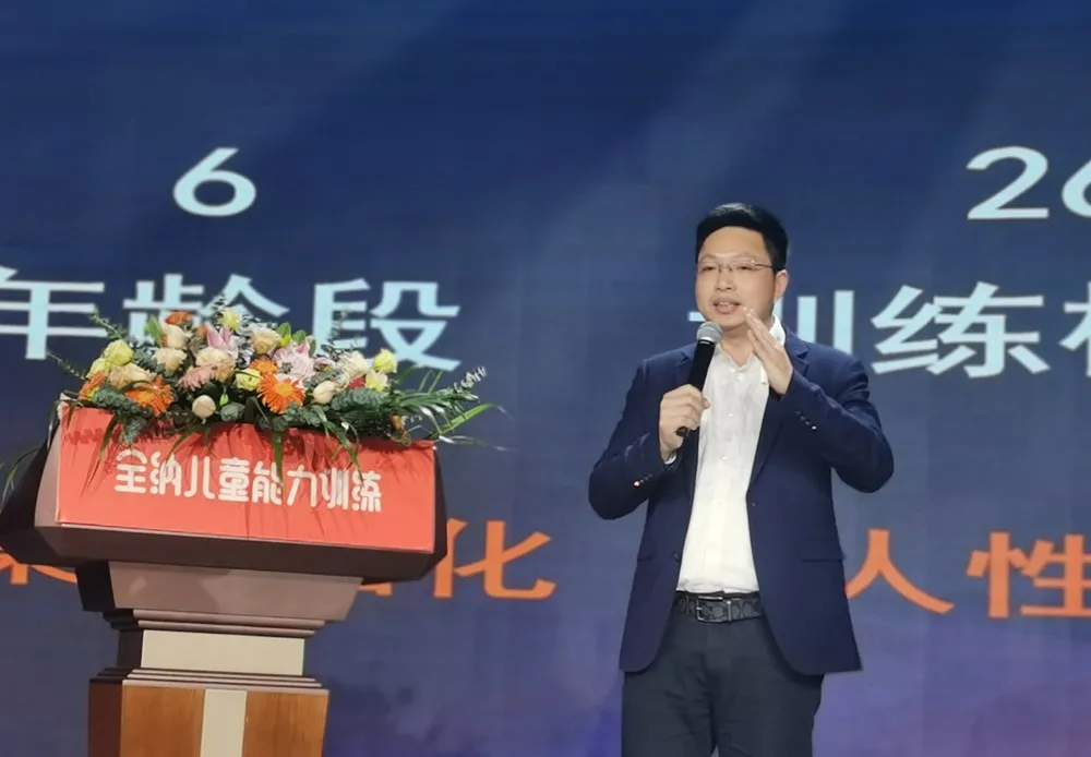 在發(fā)布會(huì)開(kāi)場(chǎng),全納總裁翁亦奇老師首先上臺(tái)致辭,對(duì)于本次品牌升級(jí)發(fā)布會(huì)做出了肯定,表明品牌的設(shè)計(jì)方式是在傳承全納理念和文化的基礎(chǔ)上,變得更加的時(shí)尚,更加有調(diào)性。同時(shí)將結(jié)合全納課程的特點(diǎn),做出適合全納的教學(xué)管理體系。闡述了在雙減政策下打造中國(guó)兒童能力訓(xùn)練與素質(zhì)教育大品牌的機(jī)遇和決心!