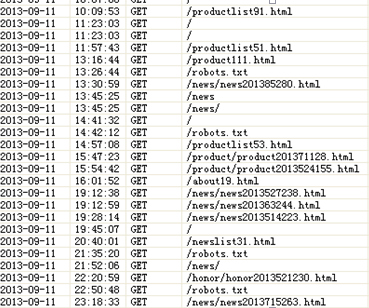 第三,綜合的指導。經(jīng)常性我們在日志里可以發(fā)現(xiàn)一些返回值不是200的條目,而通過日志的返回值我們就可以很容易地找到,這個頁面,并且對于這個頁面的錯誤或者不足進行修改。而通過對于網(wǎng)站每天日志的對比記錄,我們可以發(fā)現(xiàn),蜘蛛每天來網(wǎng)站的次數(shù)是增加了還是減少了。如果增加了,是一些友好的IP還是不好的IP,這些記錄又是從哪個入口進入的。從而分析出我們在日常的網(wǎng)站SEO工作中,在哪些方面是做得比較好的,哪些方面是不足的。