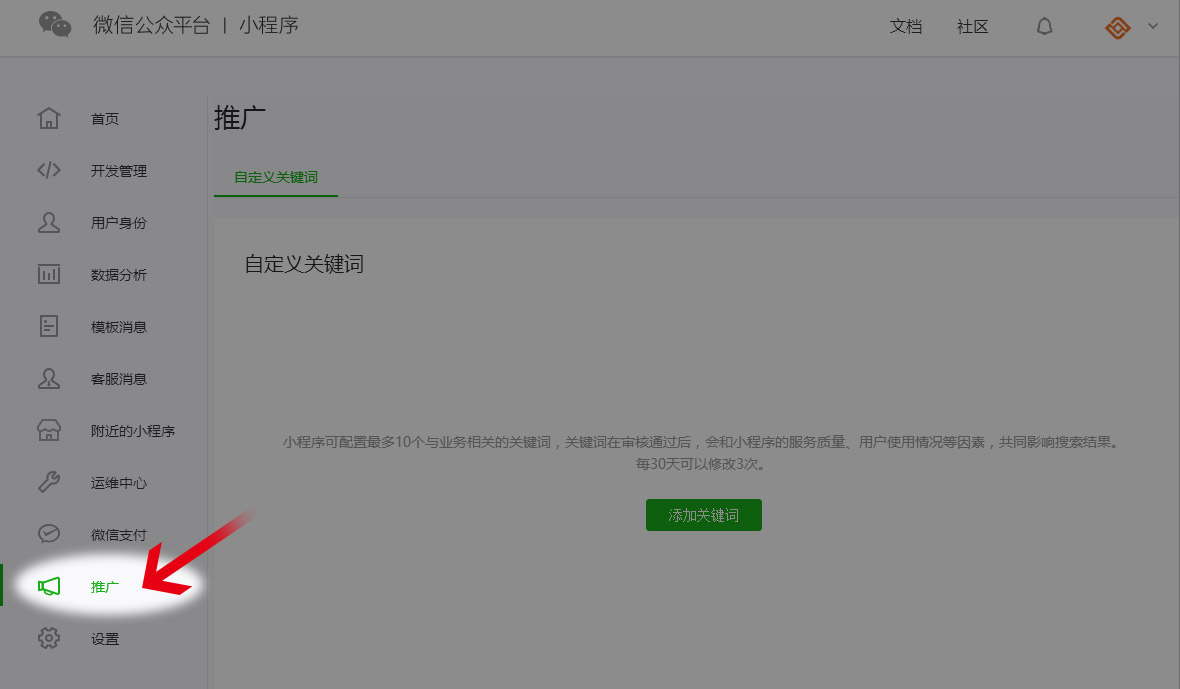 下面我們一起來看一下小程序的關(guān)鍵詞推廣是如何設(shè)置的?