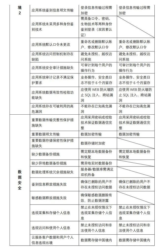 本文參考了《T/ISEAA 001-2020 網(wǎng)絡(luò)安全等級保護(hù)測評高風(fēng)險判定指引》,整理出了等保三級、二級所需產(chǎn)品和要求。研發(fā)或運(yùn)維人員通過該表可直觀了解自己的系統(tǒng)與等保要求存在的差距,并做出相應(yīng)整改。